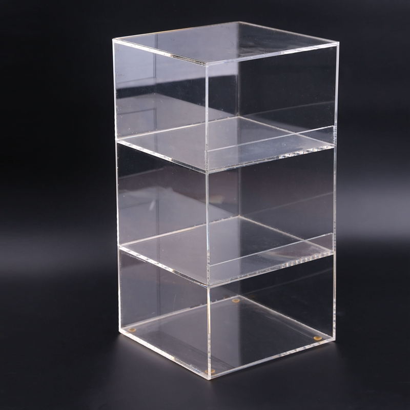 產品描述:亞克力三層展示盒,采用透光性高達96%的進口材料,能夠保證在各種環境下使用的穩定性和美觀性,適合大中小不同規格的商場以及個人賣家,可為您定制LOGO和尺寸。