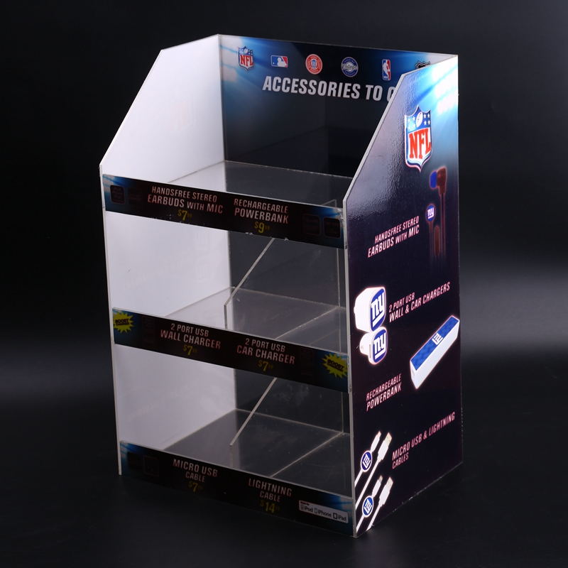產品描述:亞克力展示架,適用于大中小不同規格的商場及個人店鋪,外表可以印刷圖案或者彩色貼紙,讓客戶能夠直觀的了解到內部的產品信息、屬性和特點,為你量身定制不同大小,不同規格的設計,方便展示您的電子和其它產品,我們也可以為您添加LED彩燈,讓產品在黑暗之中更加顯著耀眼。